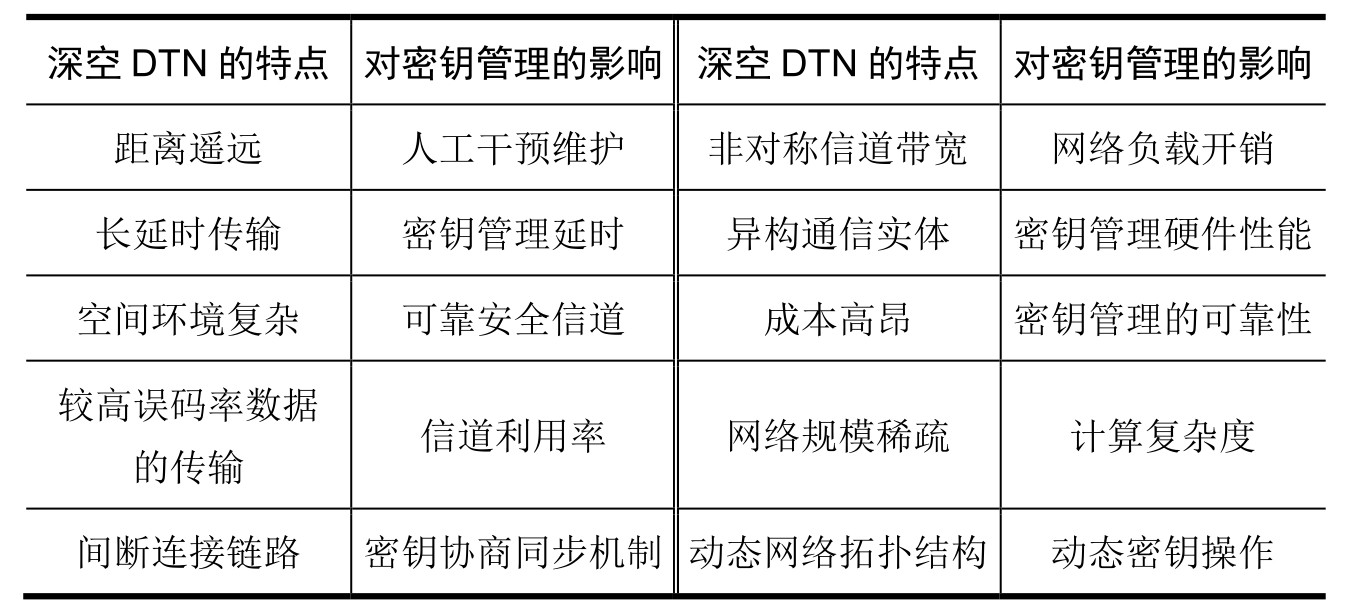 表1-1 深空DTN的空间传输特点对密钥管理的影响
