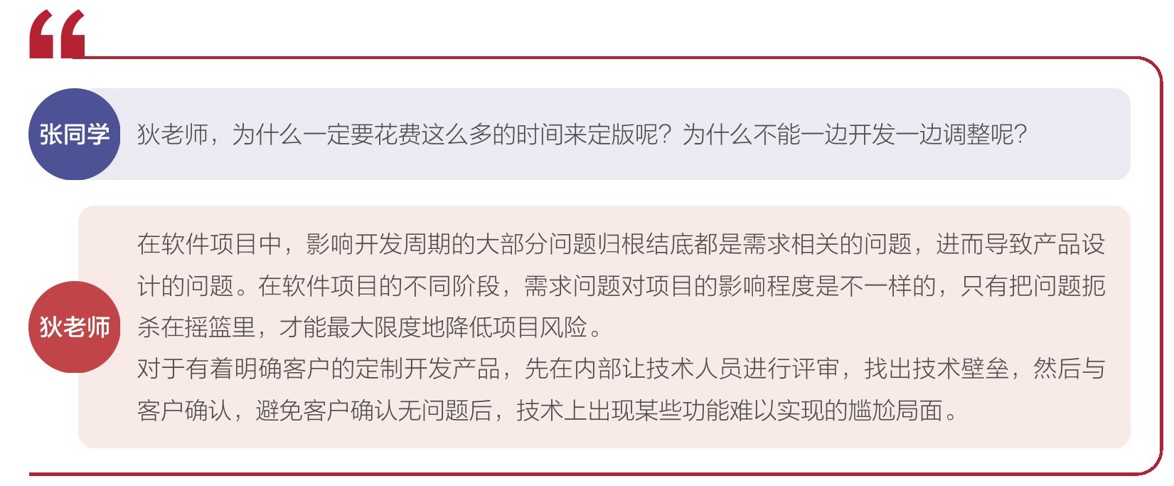 在产品开发阶段,已经开始编码时发现需求错误,如果是核心需求出现错误,影响到主干功能,可能导致之前大量的编码工作要推翻重来,对项目周期的影响是巨大的;如果是非核心需求错误引起的设计变更,改动量可能没有那么大,影响在可接受的范围内,但开发人员一般会采用“围魏救赵”的方法填补漏洞,过多的需求变更会让系统的复杂度变高,也会影响团队成员的心态。
