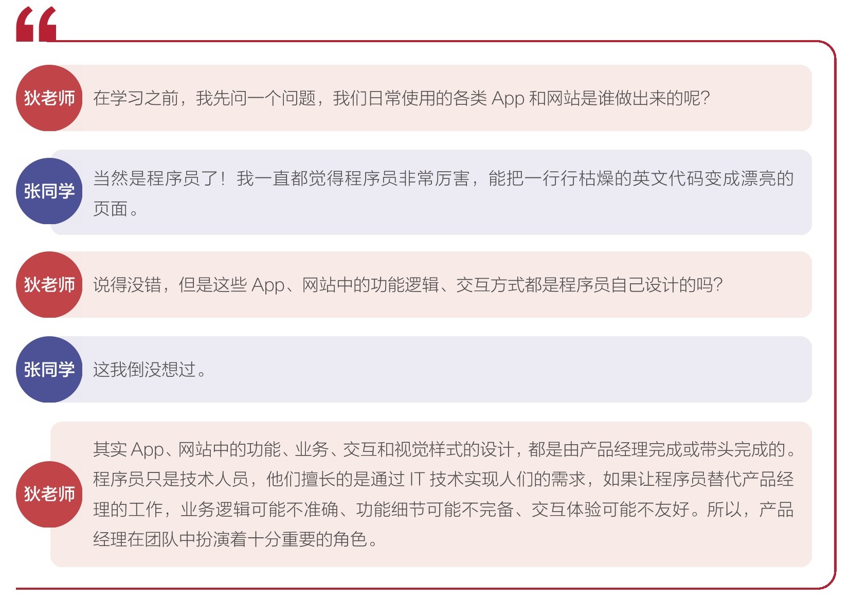 产品经理是一名创造者,创造出好玩、好用、能够解决工作和生活中各种需求的产品,可以是模式上的创新,抑或是功能、交互上的创新。例如,在PC互联网时代,QQ作为即时通信产品的领头羊,深受年轻人的喜爱;而进入移动互联网时代后,国民App——微信彻底改变了人们的沟通方式和生活方式。在成为产品经理之前,大多数人是使用者的角色,从使用者转变成创造者,要学会转变思考问题的方式,当遇到新奇好玩的产品时,要善于思考为什么有人会喜欢这款产品,哪类人群喜欢这款产品,产品的某项功能为什么这样设计。久而久之,积累自己的知识库,快速成长,为自己的工作提供支撑。