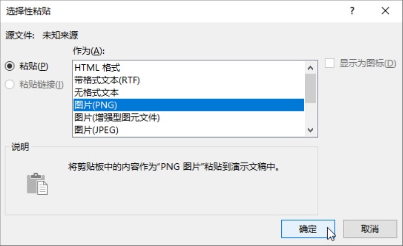 步骤 02 按【Ctrl+Alt+V】组合键,打开“选择性粘贴”对话框,在“作为”列表框中选择图片的粘贴方式,如选择“图片(PNG)”(见图3-44),单击“确定”按钮即可将文字转换成无底色的PNG图片。将原来的文字删除(或隐藏),调整PNG 图片至原文字位置即可,如图3-45所示。