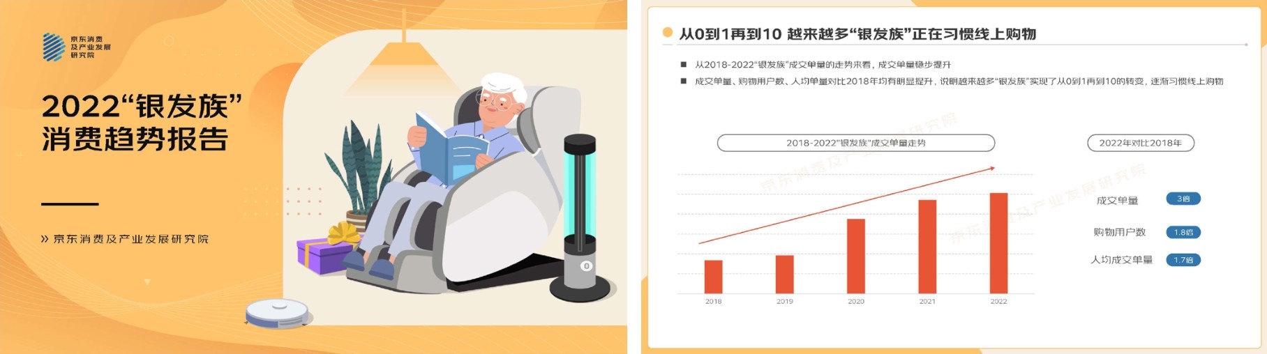 图3-4 京东消费及产业发展研究院《2022“银发族”消费趋势报告》PPT只使用了一种字体