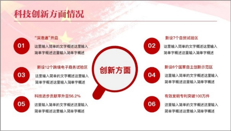 1. 英文主要用于辅助排版,使用时切忌喧宾夺主,影响中文内容的表达,必要时可以通过增加透明度来弱化英文;2. 同一页面使用的大字号的英文不宜过多,排版时最好能结合页面的图形元素使用,形成一定的层次感,看起来更加和谐;3. 作为装饰元素的英文内容也需要适当考虑翻译时的“信、达、雅”,让PPT看起来更专业、美观。