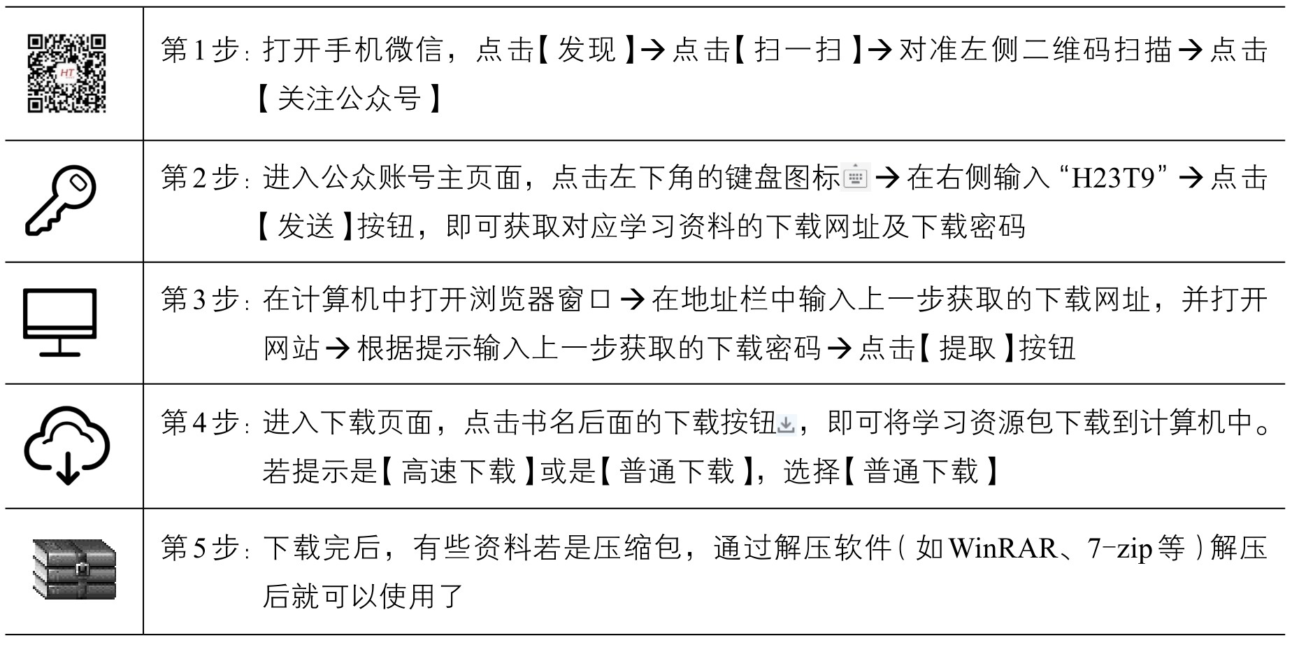 本书免费附赠超值学习资源,读者可用微信扫描右侧二维码关注公众号,输入本书77页的资源下载码,即可获得下载资源。