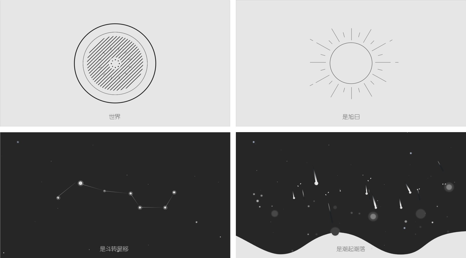 在PPT 中可加入图片、音乐、视频,让内容更丰富多彩,也可用设计得漂亮的版式来表现纯粹的文字,还可设置令人炫目的动画以吸引观众的眼球……PPT 不是画册,不是视频,不是Flash 动画,却融合了这些媒介的表现力,被应用于更广泛的行业领域。图1-2 所示为锐普公司宣传动画PPT 《变》,通过简约的点、线、形状元素便创作出了精彩的动画,很好地说明了PPT在品牌形象建设方面的突出价值。