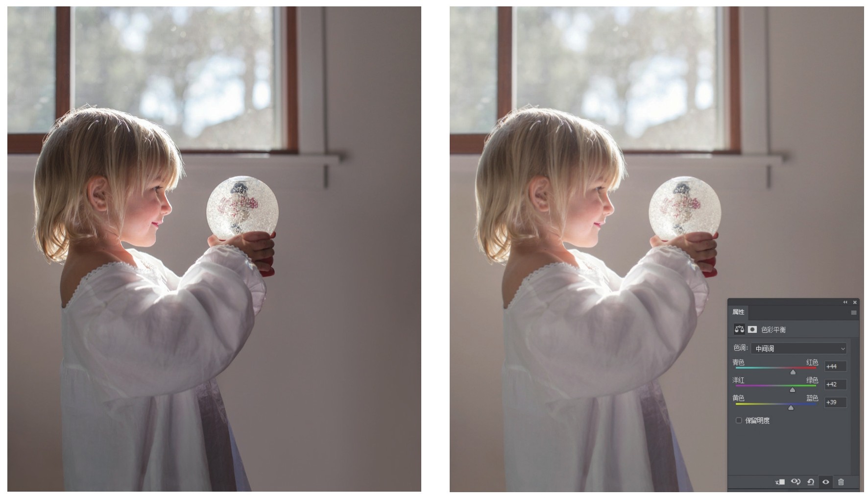 同理,我们实际调修照片时也是如此,如图1-15所示,我们在原图中分别加红、绿、蓝三种颜色,照片在变色的同时,光影也会跟着变亮。