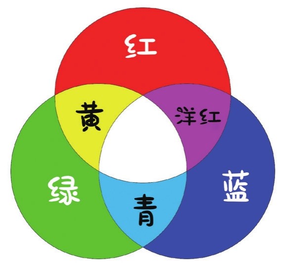 这里的三原色叠加原理是指RGB模式的调色原理,当不同的原色叠加在一起时,不仅光影会变亮,颜色也会发生变化,我们根据颜色变化的规律,就可以调色了。