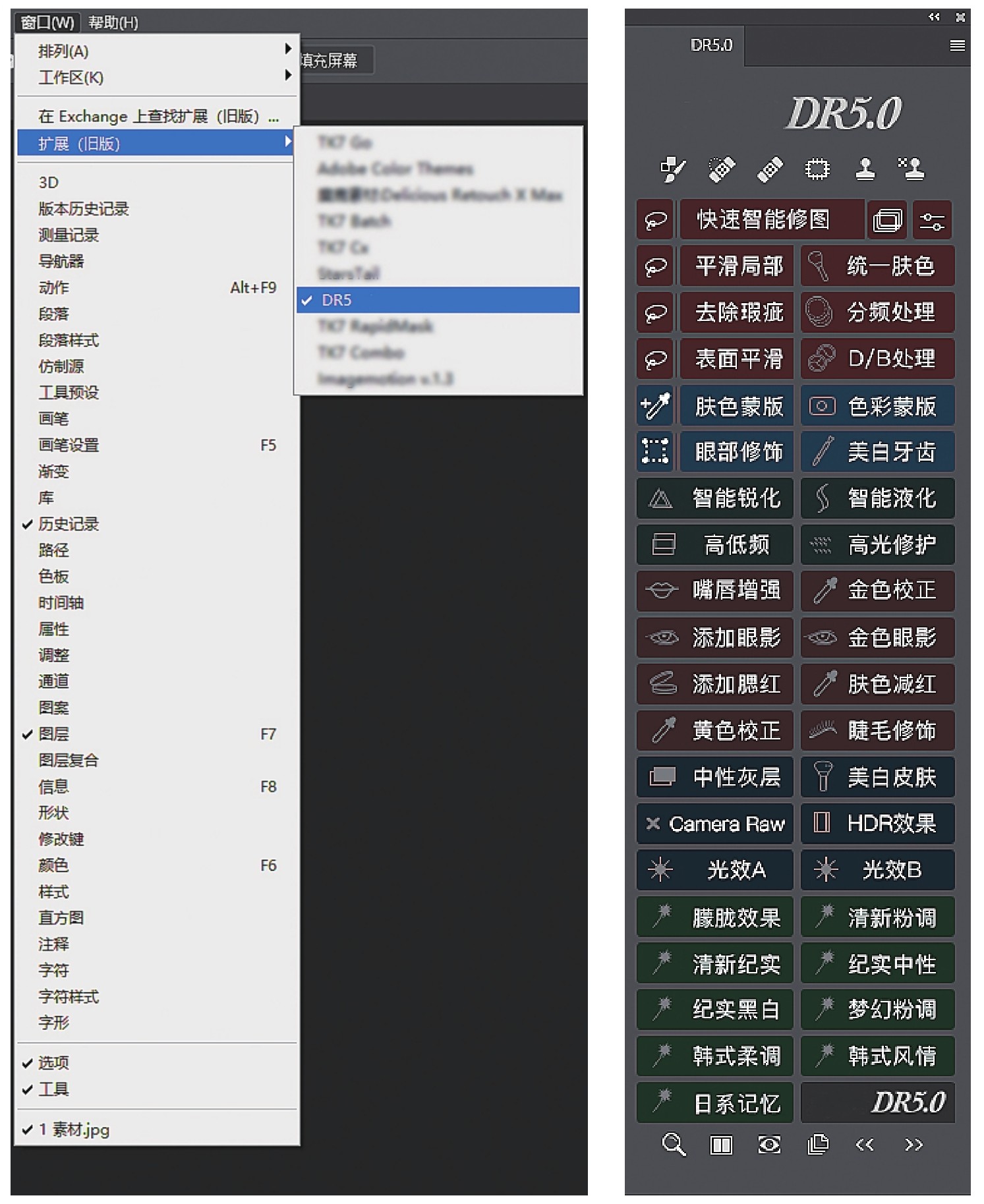 DR5(Delicious Retouch 5)是一款强大的磨皮插件,可以在保留真实皮肤质感的同时磨皮,除此之外,它还可以调整妆面、修饰五官,甚至可以调一些常见的色调,它可以称为修图师的百宝箱。