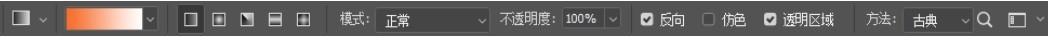 在工具箱中选择需要的工具后,在选项栏可设置工具箱中该工具的相关参数,根据所选工具的不同,所提供的参数项也有所区别,【渐变工具】 选项栏如图1-11所示。