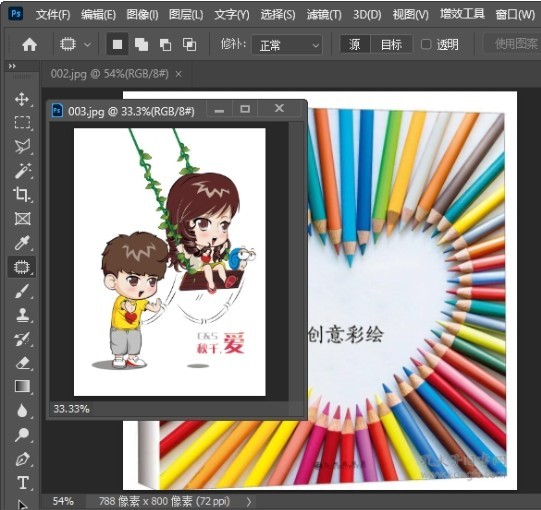 在Photoshop 2022中打开一个图像,便会创建一个图像窗口,如图1-13所示。如果打开了多个图像,则各个图像窗口会以选项卡的形式显示,单击一个图像的名称,可将其设置为当前操作的窗口,如图1-14所示。