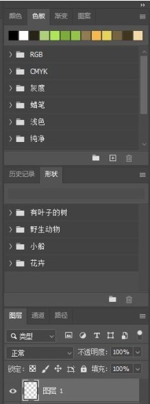 浮动面板是特殊功能的集合,常用于设置颜色、工具参数和执行编辑命令。在【窗口】菜单中可以选择需要的面板将其打开。默认情况下,面板以选项卡形式成组出现,并停靠在窗口右侧,如图1-18所示,用户可根据需要打开、关闭或自由组合面板,如图1-19所示。