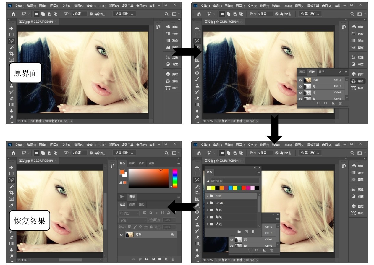步骤01 打开“素材文件\第1章\黄发.jpg”。