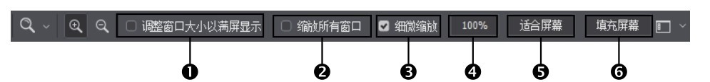 选择【缩放工具】 或按【Z】键后,可激活【缩放工具】 选项栏,如图2-28所示,相关选项的作用见表2-2。