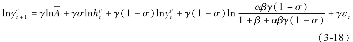 由于本章的关注重点并非最优人力资本投资,而是收入的代际传递系数。因此我们将(3-11)式代入(3-8)式,进而可得到收入的代际传递方程: