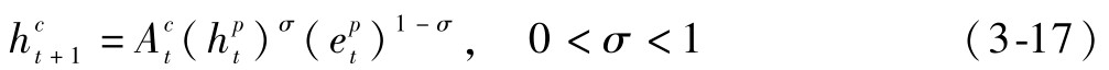 其中,γ<1表示人力资本的边际收益率递减。同时,个体人力资本的形成依赖于其自身的天赋(