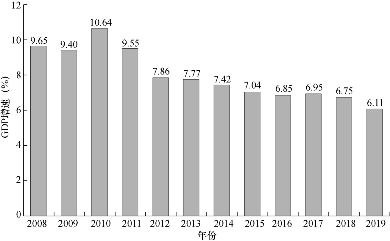 2008年国际金融危机爆发以来,国内外经济环境发生了巨大的变化,我国经济下行的压力正在增大。图1-1显示,从2011年我国经济增长出现明显放缓开始,直至2016年,GDP增速连续6年下滑。2017年,我国 GDP 增速虽然实现了7年以来的首次回升,但6.95%的绝对增速也远低于2010年以前的平均水平。随后两年,我国 GDP 增速再次回落。经济增长速度的明显下降标志着我国经济已经由高速增长阶段转向中高速增长阶段,经济发展进入“新常态”。