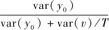 其中, 。由此可知,减轻系数估计偏误的第一种方法是对收入 y 0 进行 T年平均,因为平均之后能够减少随机冲击的扰动程度。而对于不同的数据,最优 T 值也不同,可以通过数值模拟求出。Solon(1992)和 Mazumder(2005)证明经过 T 年平均之后,(2-2)式和(2-3)式中的偏误系数分别为 ,偏误明显变小。Mazumder(2005)在一阶自回归冲击的假定下,通过数值模拟得出使回归偏误最小的T值在20和30之间。