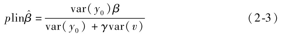 Solon(1992)首先证明,如果随机冲击是一个白噪声(white noise),那么代际收入弹性β的估计值 存在向下的偏误。令扰动 v 为白噪声,y 0 为回归方程(2-1)中定义的父代收入,那么偏误的大小为: