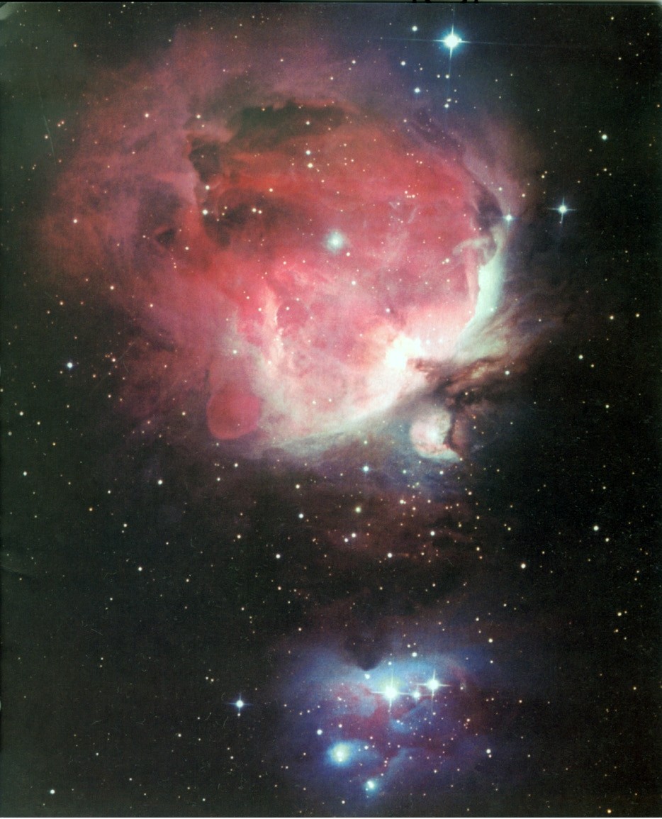 这是最著名的气体星云之一,在猎户座中三星下方,肉眼依稀可见。它也是天文爱好者最爱观测和拍照的天体。它是由气体氢和尘埃组成,受附近恒星的激发而发光。在彩色照片中,猎户座大星云的色彩特别美丽而鲜艳。这里也是孕育恒星的场所,距离为1 500光年。星云的宽度约为太阳系直径的数万倍。