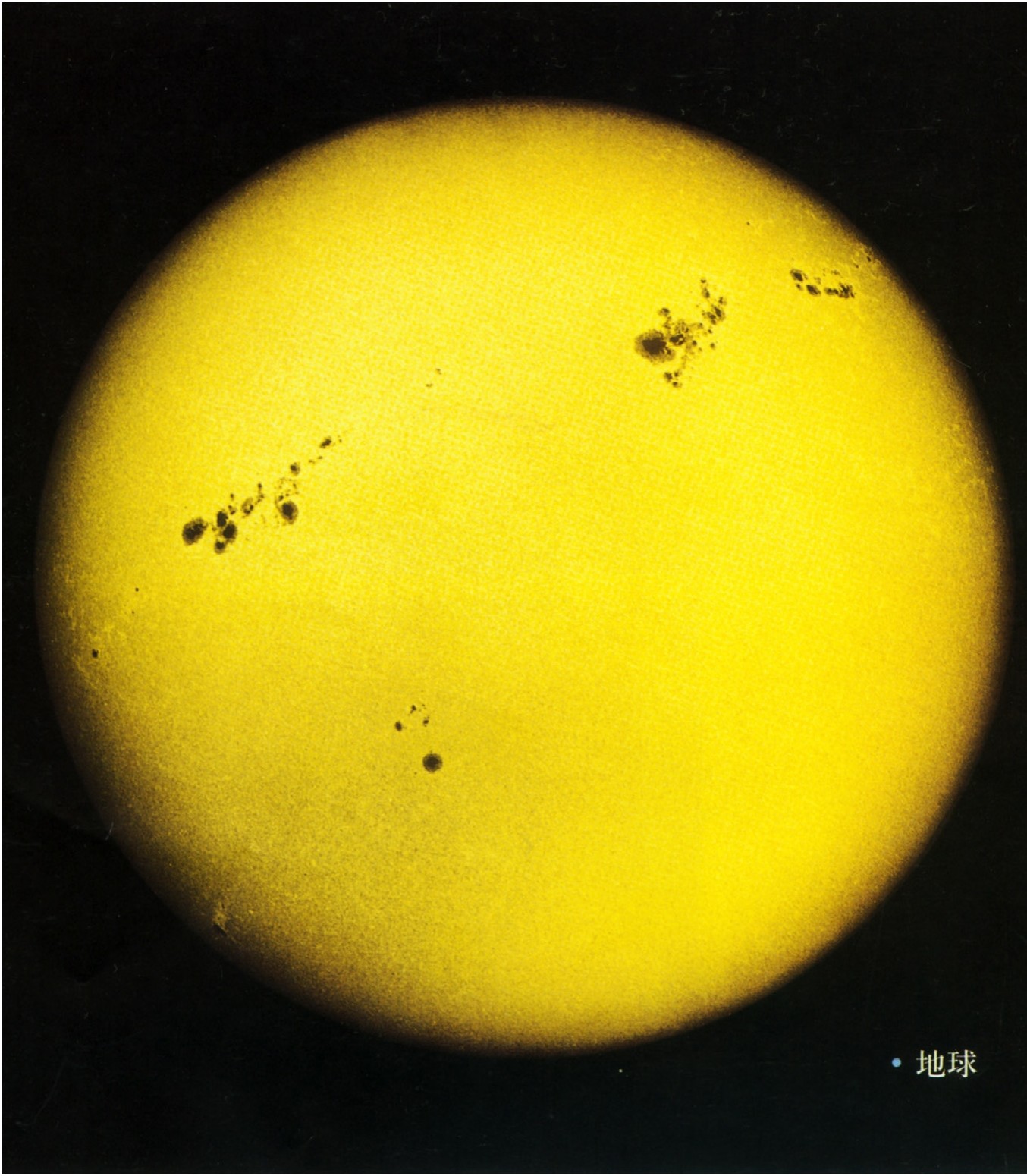 太阳的体积巨大,是地球的130万倍。太阳上的大黑子群,隔着云雾用眼睛可以直接看到。它们是太阳表面温度较低的部分。