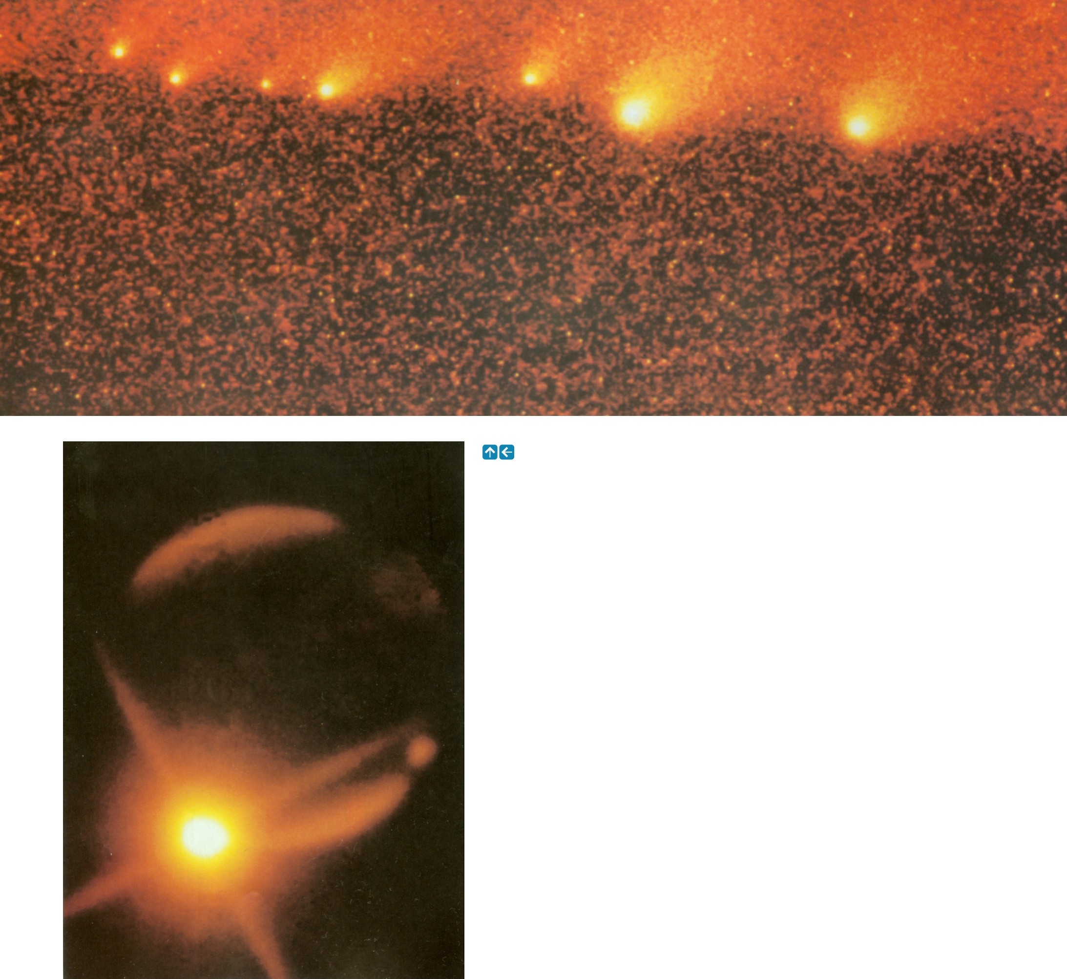 1994年苏-列9号彗星被木星的强大引力撕裂成块(上图为部分照片)。