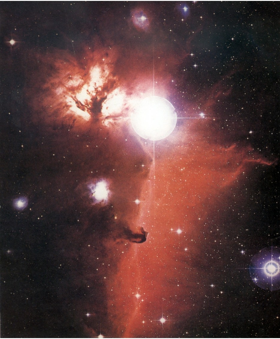 位于猎户座三星中ζ星的附近,是最著名的暗黑星云之一。这里也是恒星诞生的场所。在红色的明亮弥漫星云背景上不发光的物质呈现出马头形状,因此而得名。明亮的恒星、泛红色的弥漫星云衬托出马头星云的美景。星云的距离为1 300光年。马头直径约1光年。