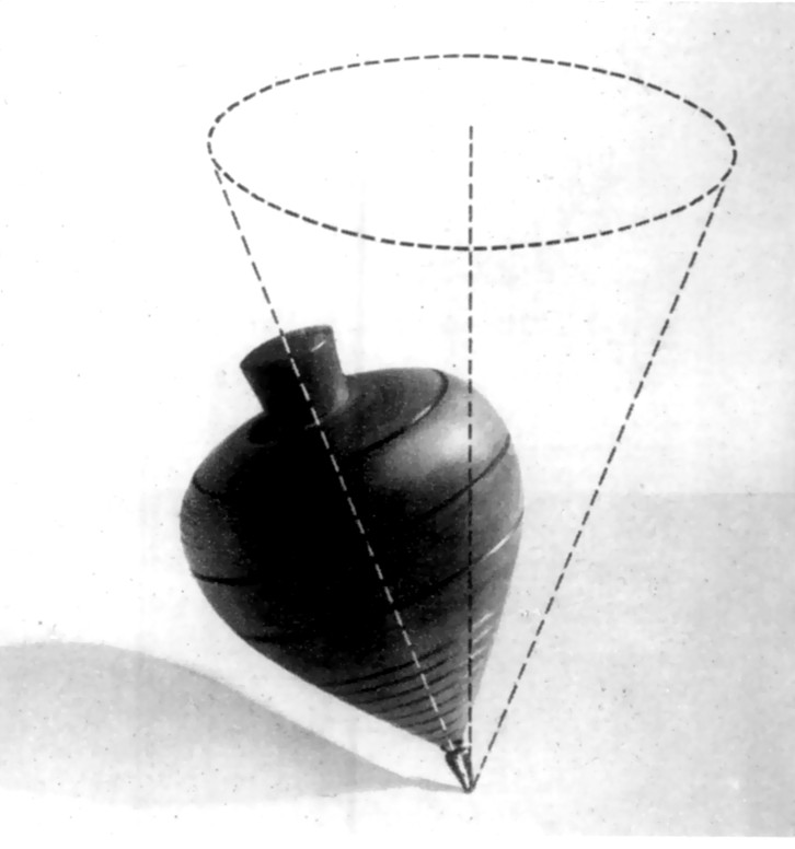 图60 地球自转轴方向的改变,造成两分点的岁差,可以比拟为陀螺自转轴的运动