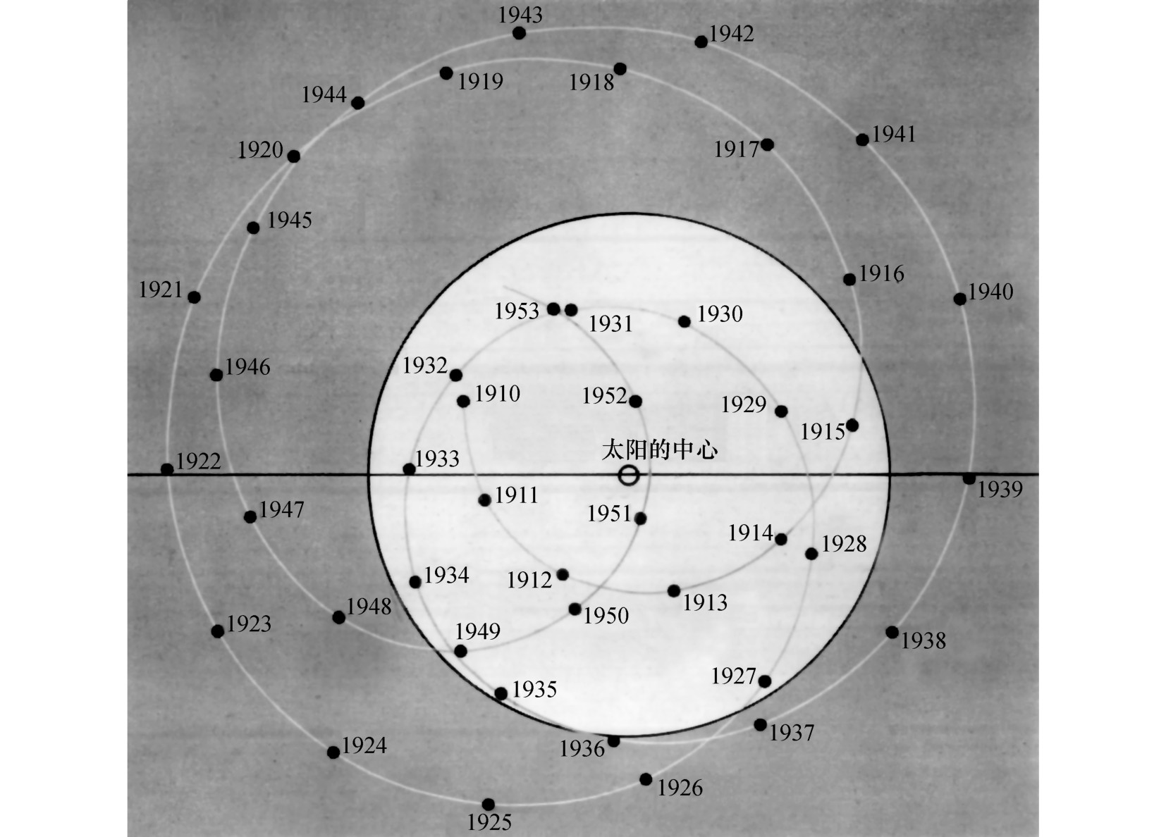这重心围绕太阳的中心绘出一连串的环圈,它常在太阳的球体以外。事实上,这一点应当看作是固定点,围绕这一点运动的不只是行星,而且还有太阳。就这一观点来说,天体力学对哥白尼的太阳系的学说,作了一点修正。