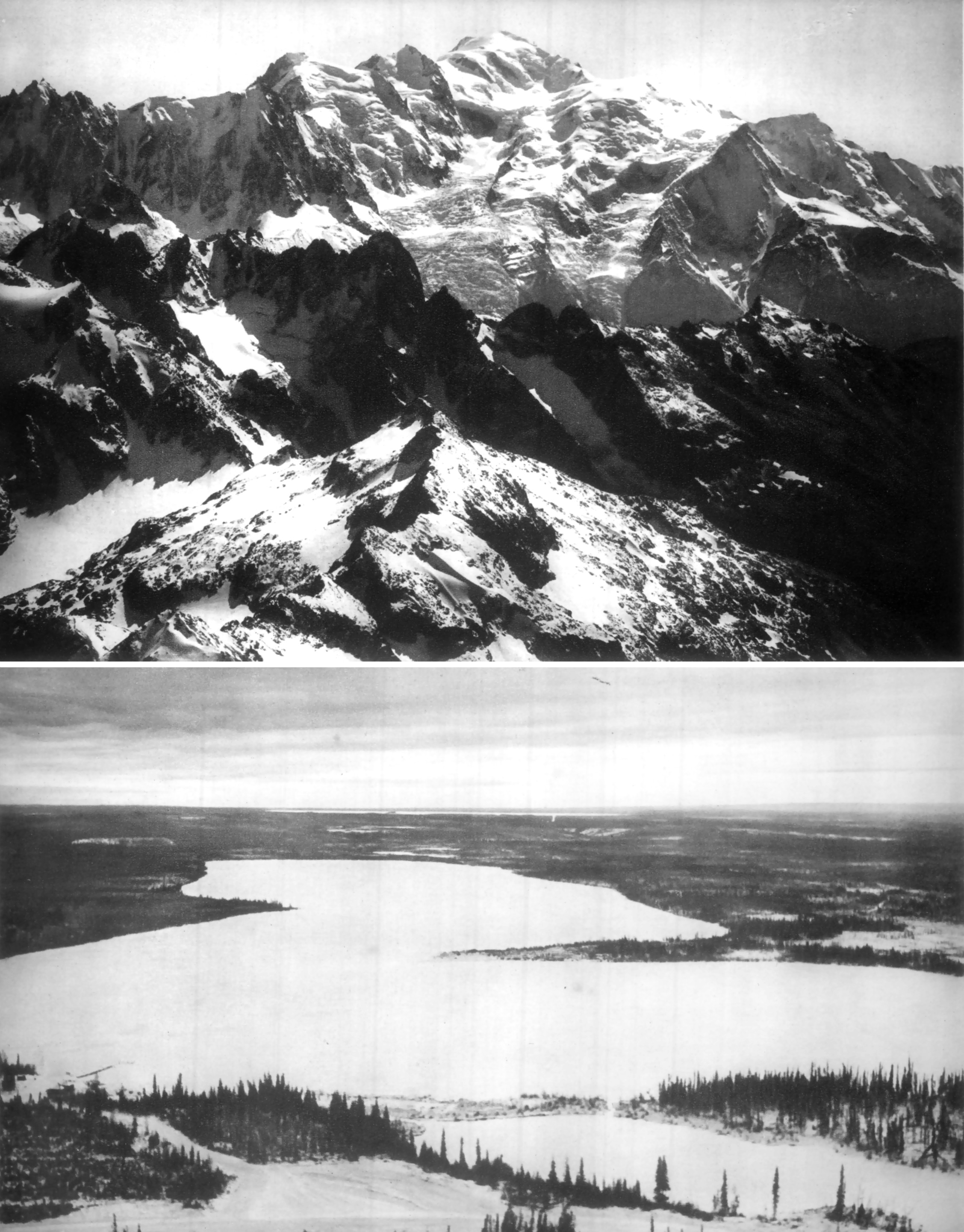 上图是阿尔卑斯山的勃朗峰顶,附近设有观象台;下图是加拿大马更些河的大盆地。 KIc8u9xEszIA3bN+hfL09Rw+QVFTBDekiR3gO18ITWNR9JHg86y6nhEIG2ZQnvqo