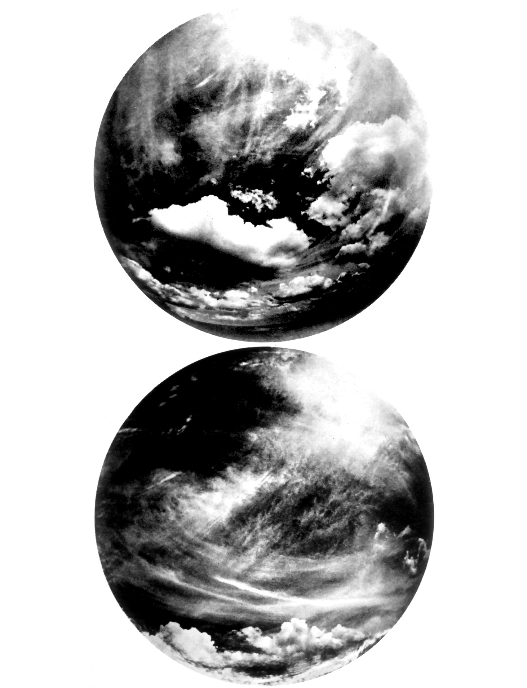 近年来,我们对于地是球形的这个论断已经得到直接的证据,这便是从很高的一点拍摄地平线的照片。1935年有人用上升到平流层的气球,在高出地面22千米处拍照,最近更有人用火箭载着照相机射到100千米高处去拍照(本篇封面图,即图1)。地平线的曲率在这第一张照片上已经可以看得出,在第二张照片上,更是非常的明显(参看本篇第七章)〔1961年以来,载人宇宙飞船已经从更高处拍摄了许多地面照片。——校者注〕。