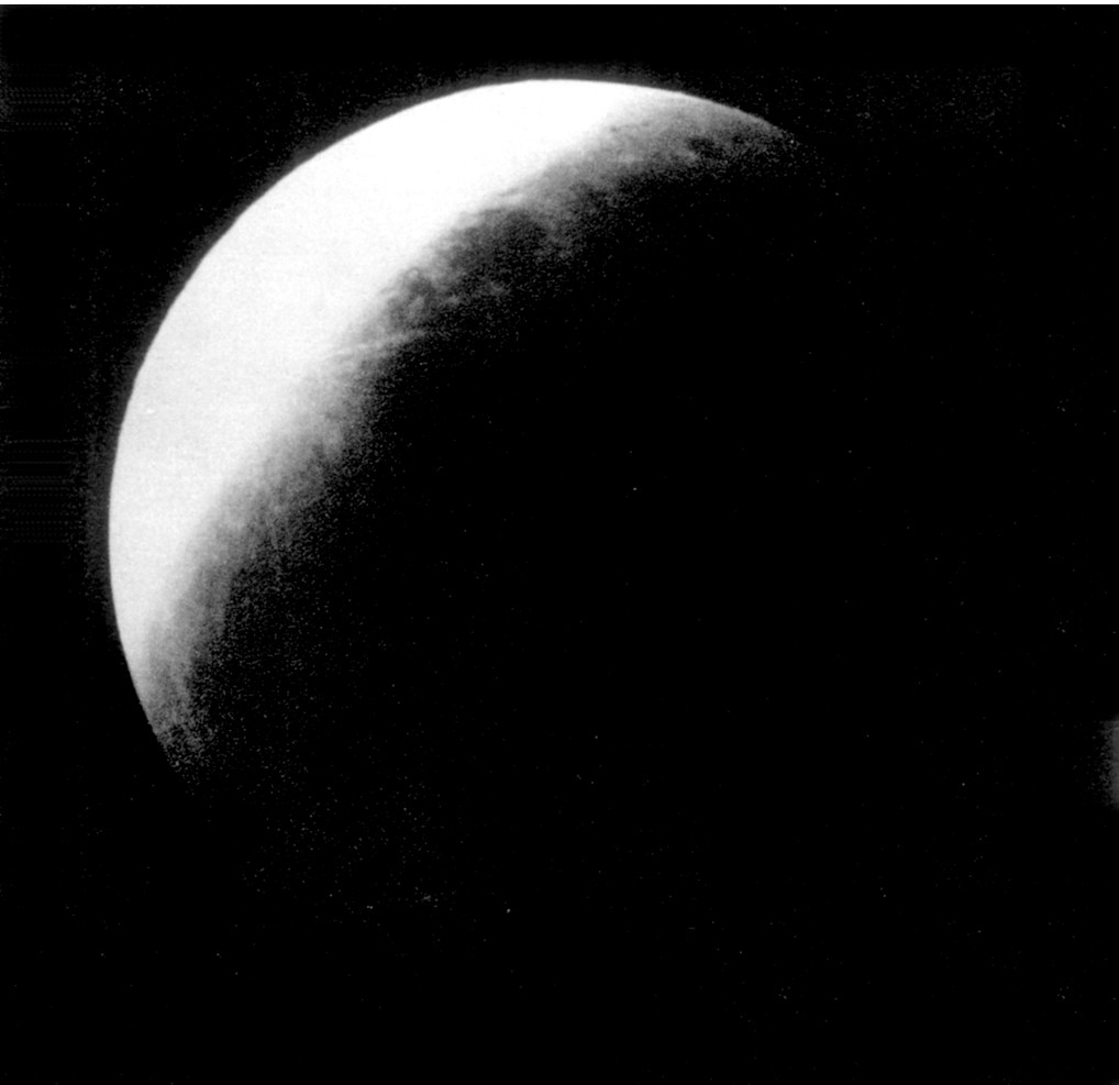 图3 太空中的地球,这是在月亮上看地球的情况,地球的一部分被云掩盖着