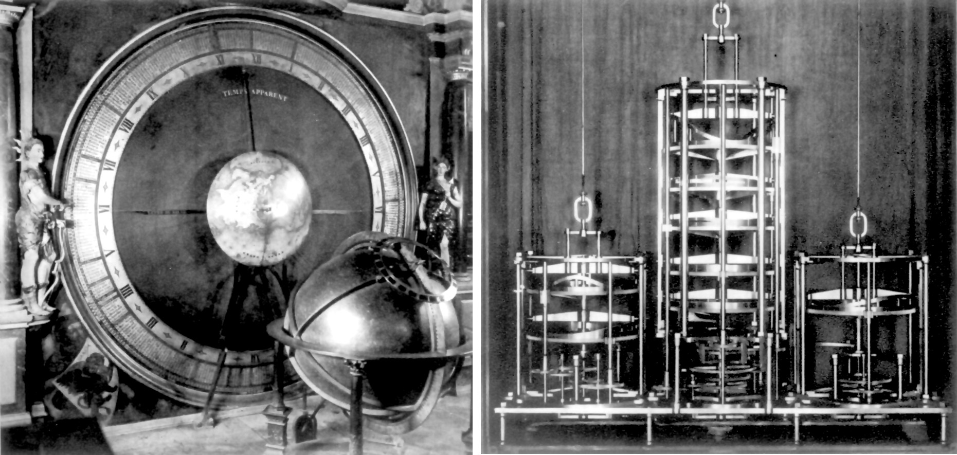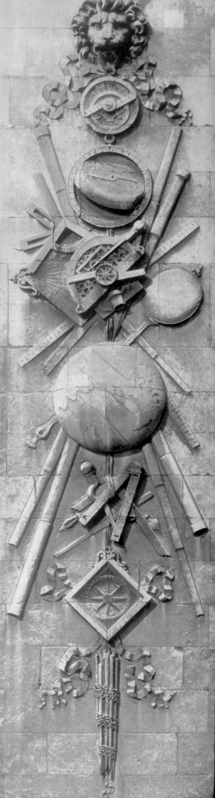 巴黎天文台门额上的浮雕。图下方是一座惠更斯的重锤摆钟。