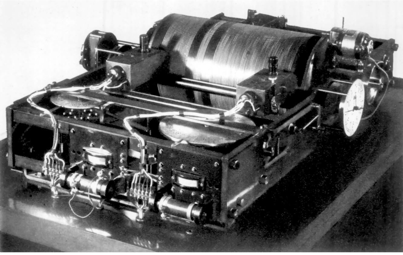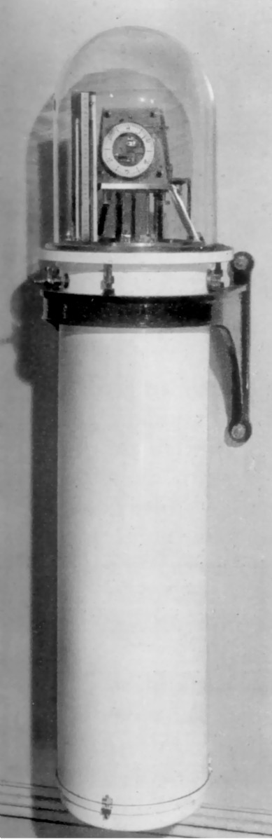可是在平常的生活中,一般人并不需要这么高的精确度,巴黎天文台装置的说话钟(图29),便可以满足他们的需要。这座钟上有一根特殊的电话线和巴黎市民通话。广播电台每天也转播几次。这座钟的主要部分有二:其一是高度精确的摆钟,因摆动使电接触,发出极短暂清脆的时号;其二是像电影一样,在每一时号发出之前先报告时、分、秒。这座钟每天经人校准数次,时号发出的精准度达百分之一秒或百分之二秒。