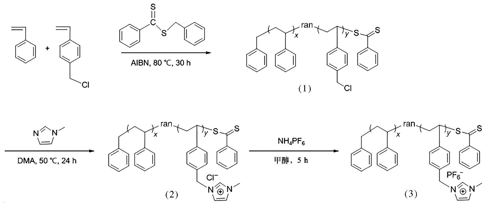 图2.4 P[S-r-VBMI][PF 6 ]合成过程 [75]