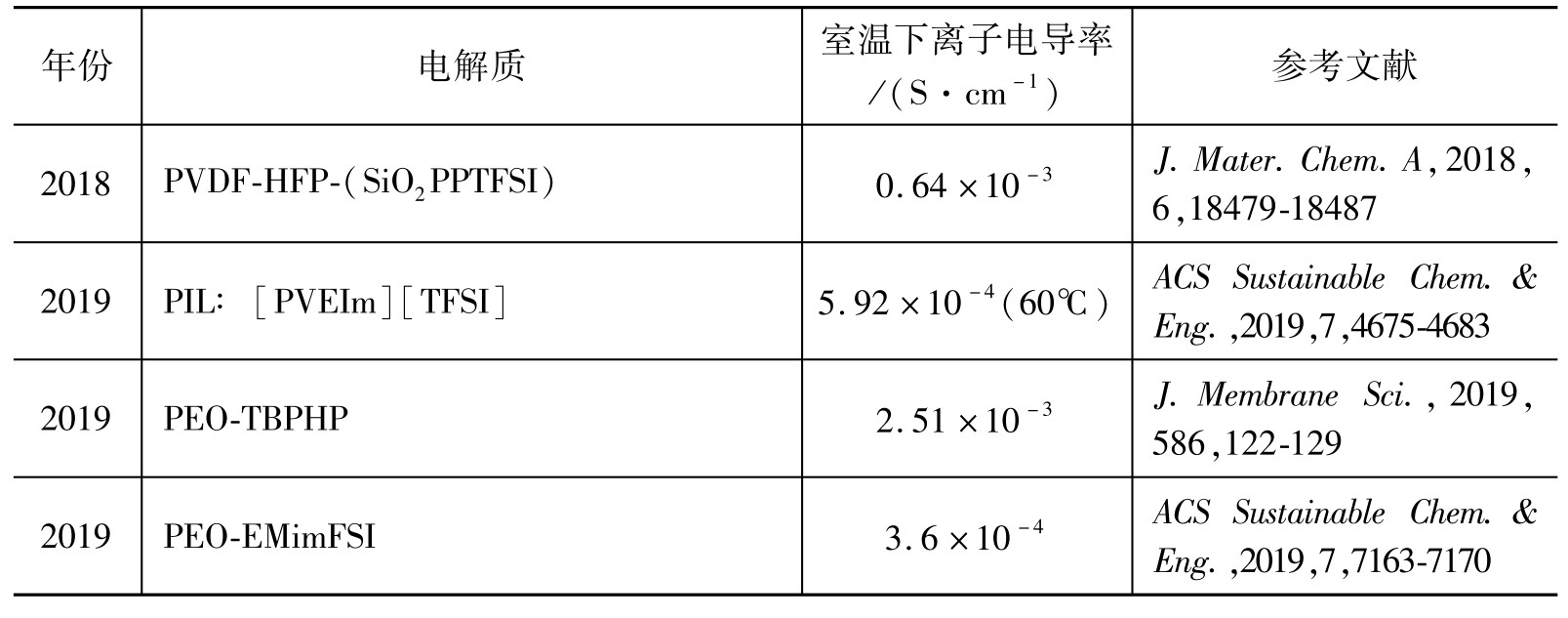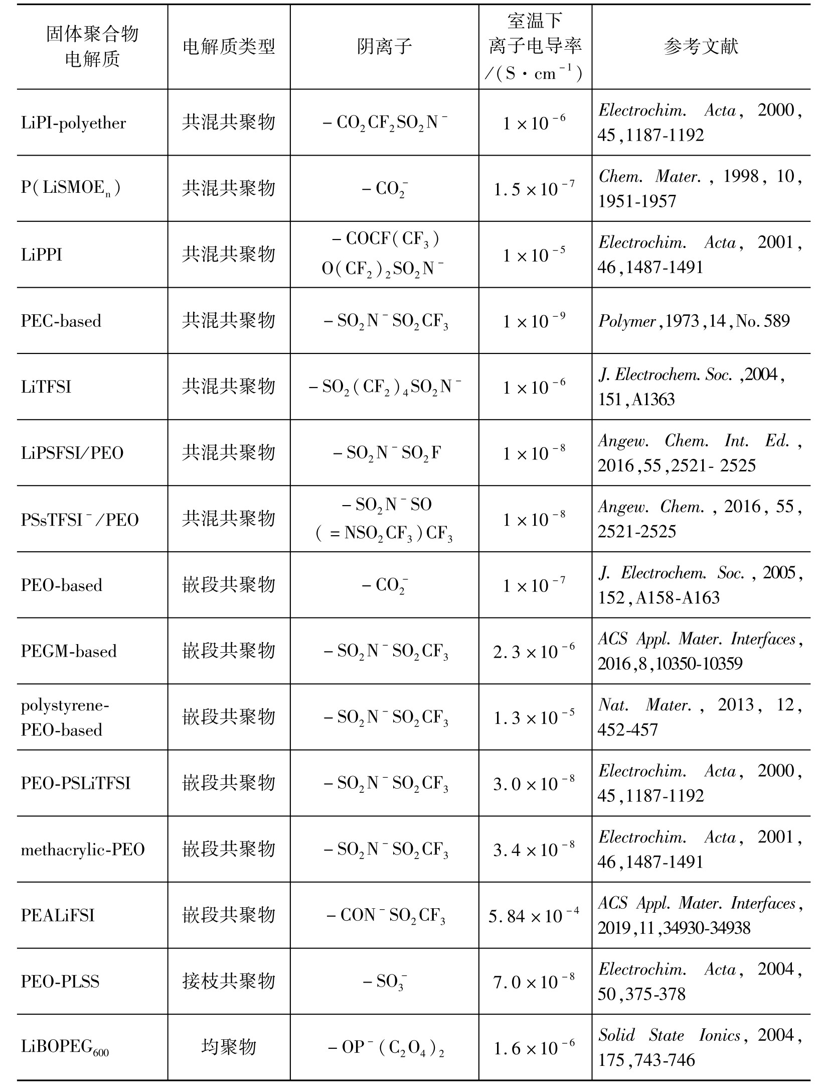 近来报道的一些聚合物电解质及其性质分别列于表2.1~表2.4。