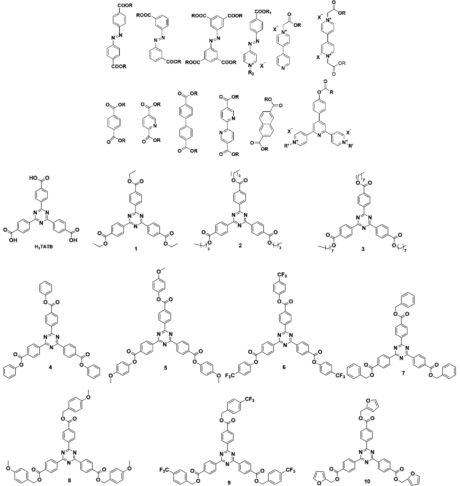 图3.32 具有电子给体-受体结构的电致变色2,4,6-三苯基-1,3,5-三嗪酯的分子结构