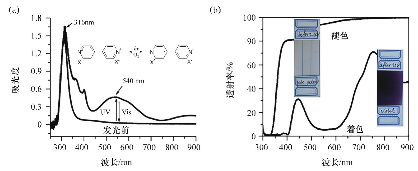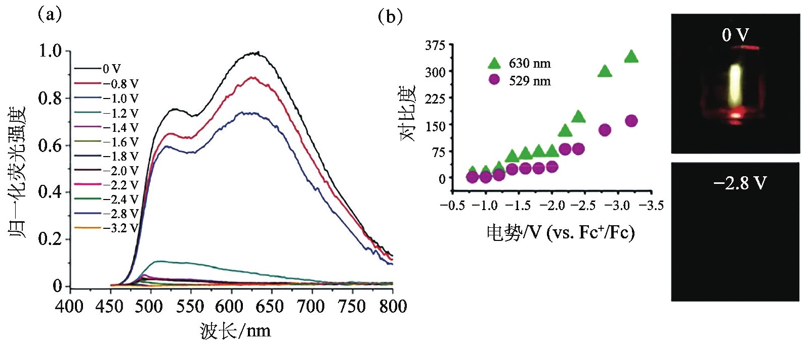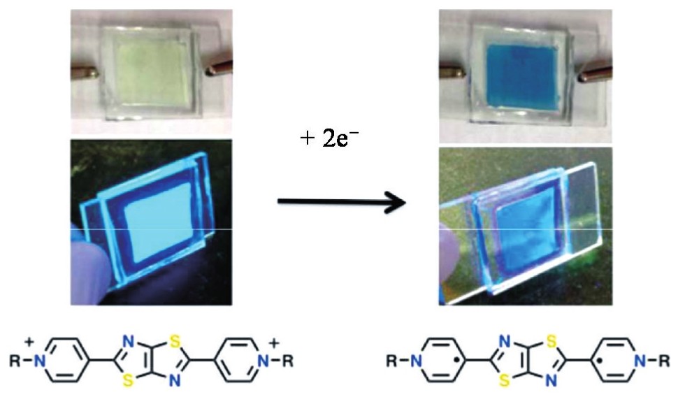 通过氧化还原过程调节光致发光颜色的材料称为电致变色材料。联噻吩桥接的紫精是典型的电致变色荧光材料,可通过电化学开关淬灭荧光。