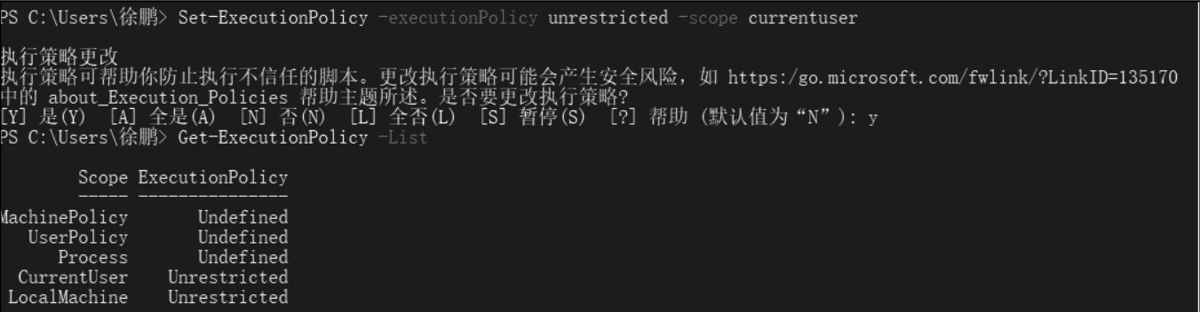 从上面我们可以看到,当前的PowerShell的执行策略范围如下。
