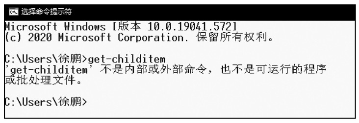 有些读者可能是第一次看到这个单词:Cmdlet。在PowerShell 出现之前大家习惯使用CMD Shell 中的命令进行过程的操作,比如使用mkdir 命令进行文件夹的创建,使用copy 命令进行文件的复制。在PowerShell 出现以后,命令结构和模式发生了很大的变化,为了区别在传统的CMD Shell 执行的命令,我们将在PowerShell 中执行的命令称为Cmdlet。Cmdlet 的执行必须在PowerShell环境中,在CMD Shell 中执行Cmdlet的命令,会出现如图4.1所示的错误。