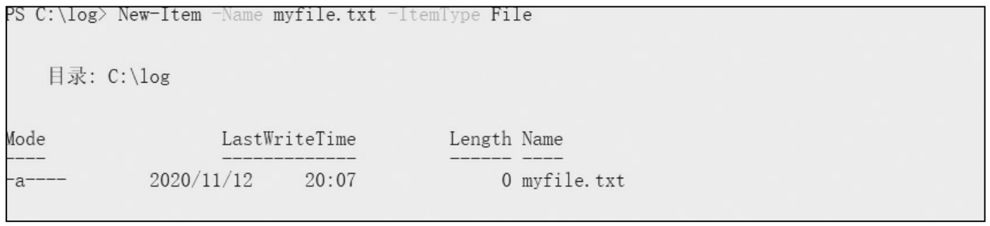 我们可以利用New-Item 建立文件,命令操作非常简单,图4.36所示为创建文件的具体方法。