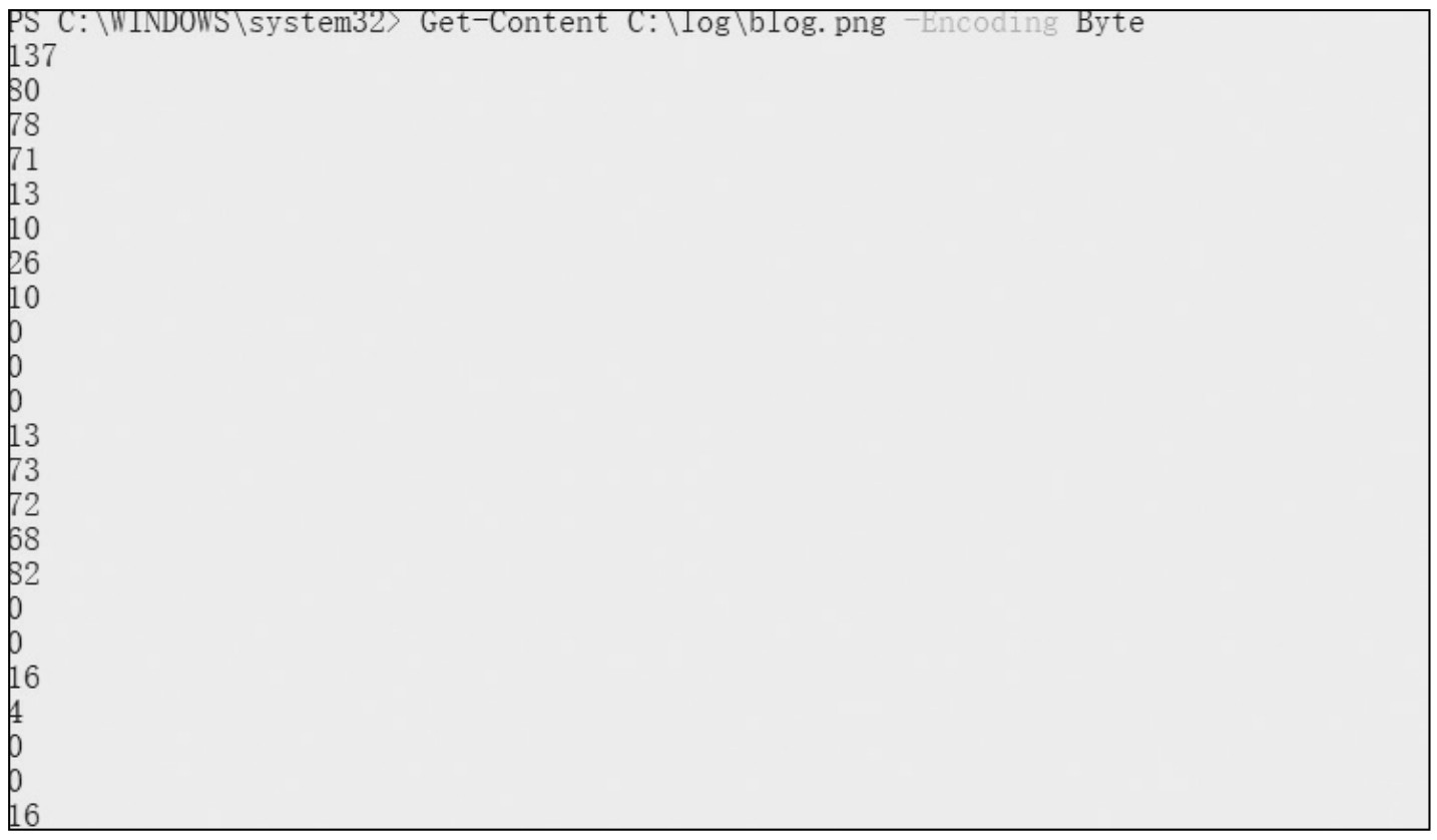 而对于一些不能直接读取的数据,如Word文档,Excel文档或其他的二进制执行文件,我们使用Get-Content命令是否可以直接读取呢?当然也是可以的,图4.50所示为读取的二进制数据。
