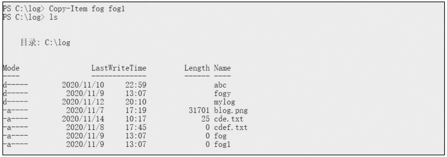 使用Copy-Item命令有两个位置参数,其中的第零号位置就是源文件,第一位是目标文件路径和名字。提供两个参数就可以完成从源文件到目标文件的复制操作,图4.52所示为相关的操作步骤和方法。