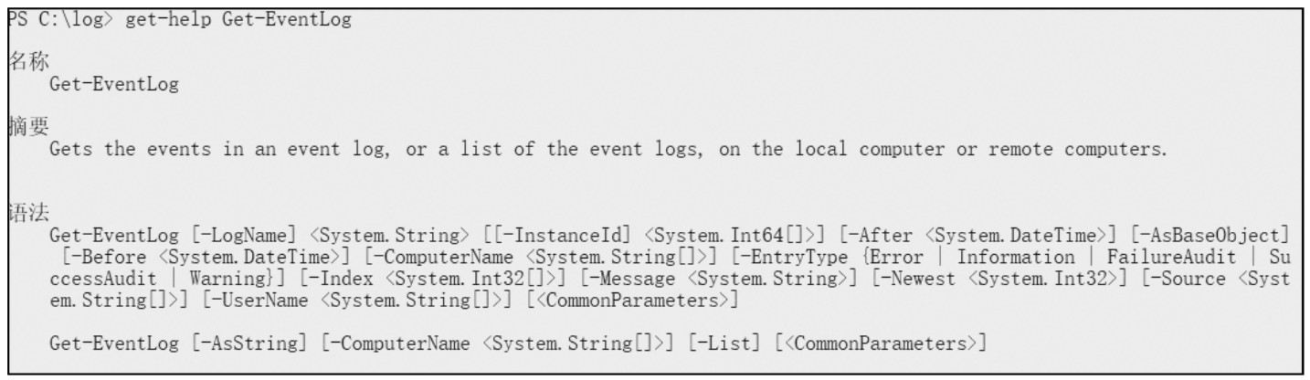 图4.55 获取Get-Eventlog 命令的帮助内容