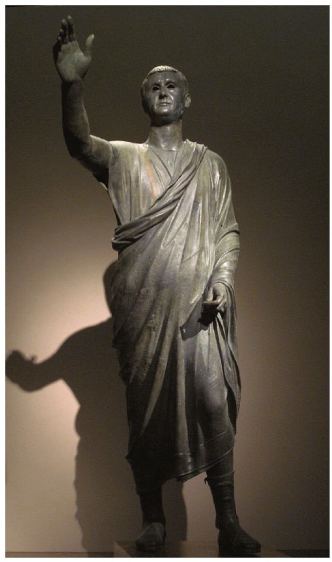 图3-8 《演说者》(奥勒·梅特利像),出土于意大利科尔托纳,青铜,公元前1世纪早期,高183厘米,佛罗伦萨国家考古博物馆