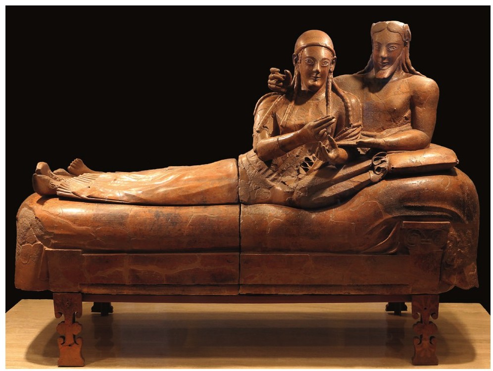 图3-3 《石棺上的夫妻》,意大利塞维特里,赤陶,约公元前520年,高114厘米,罗马伊特鲁里亚国家博物馆