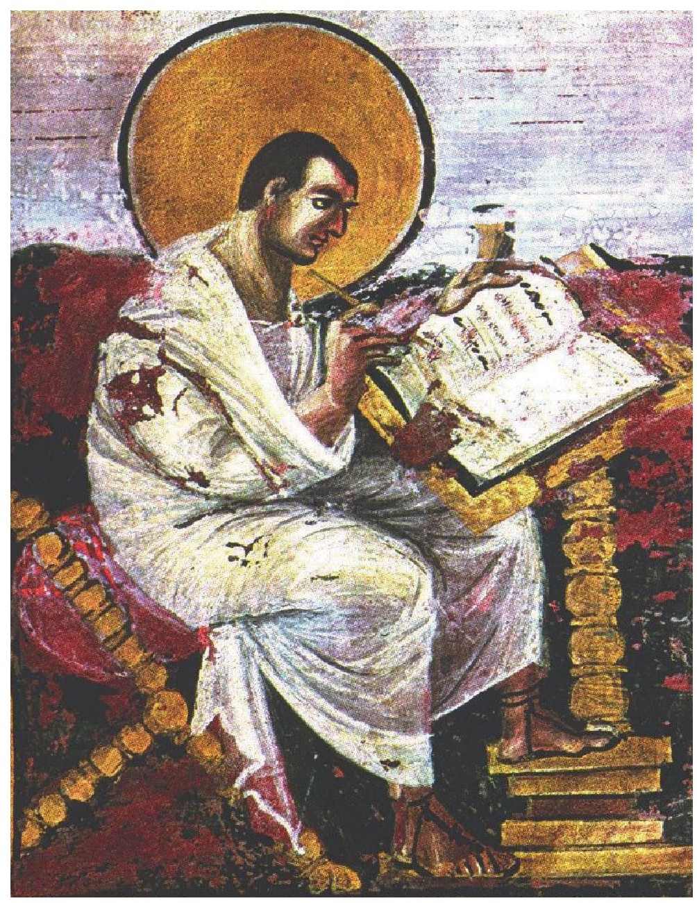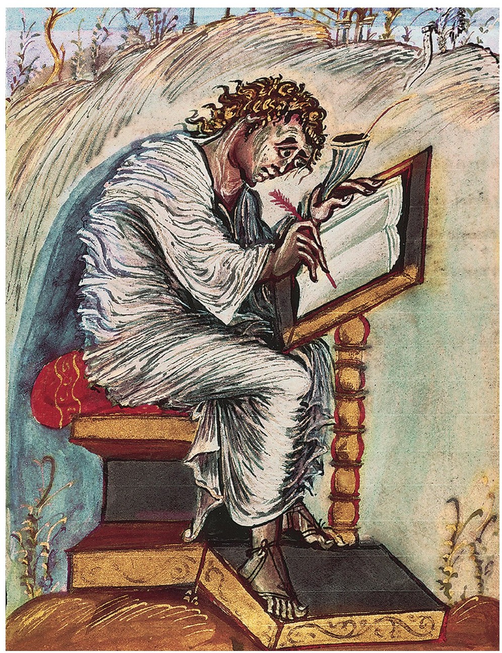 图5-5 《埃博福音书》第18页左,法国豪特维尔斯,犊皮纸油墨蛋彩画,约816—835年,26厘米×22.2厘米,法国埃佩尔奈市立图书馆