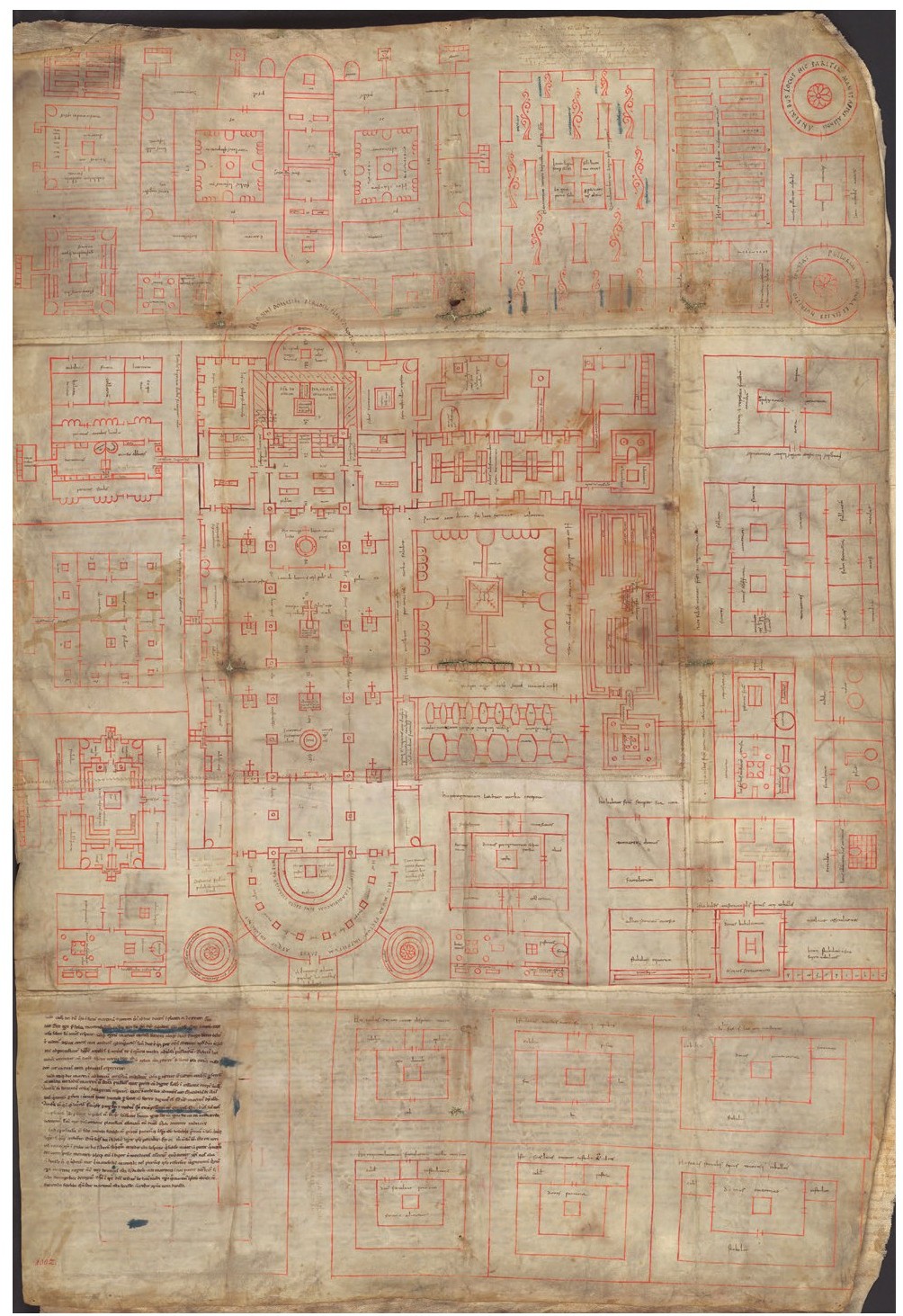 图5-9 圣加仑修道院平面设计图,羊皮纸红墨水,约819年,112厘米×77.5厘米,圣加仑修道院图书馆