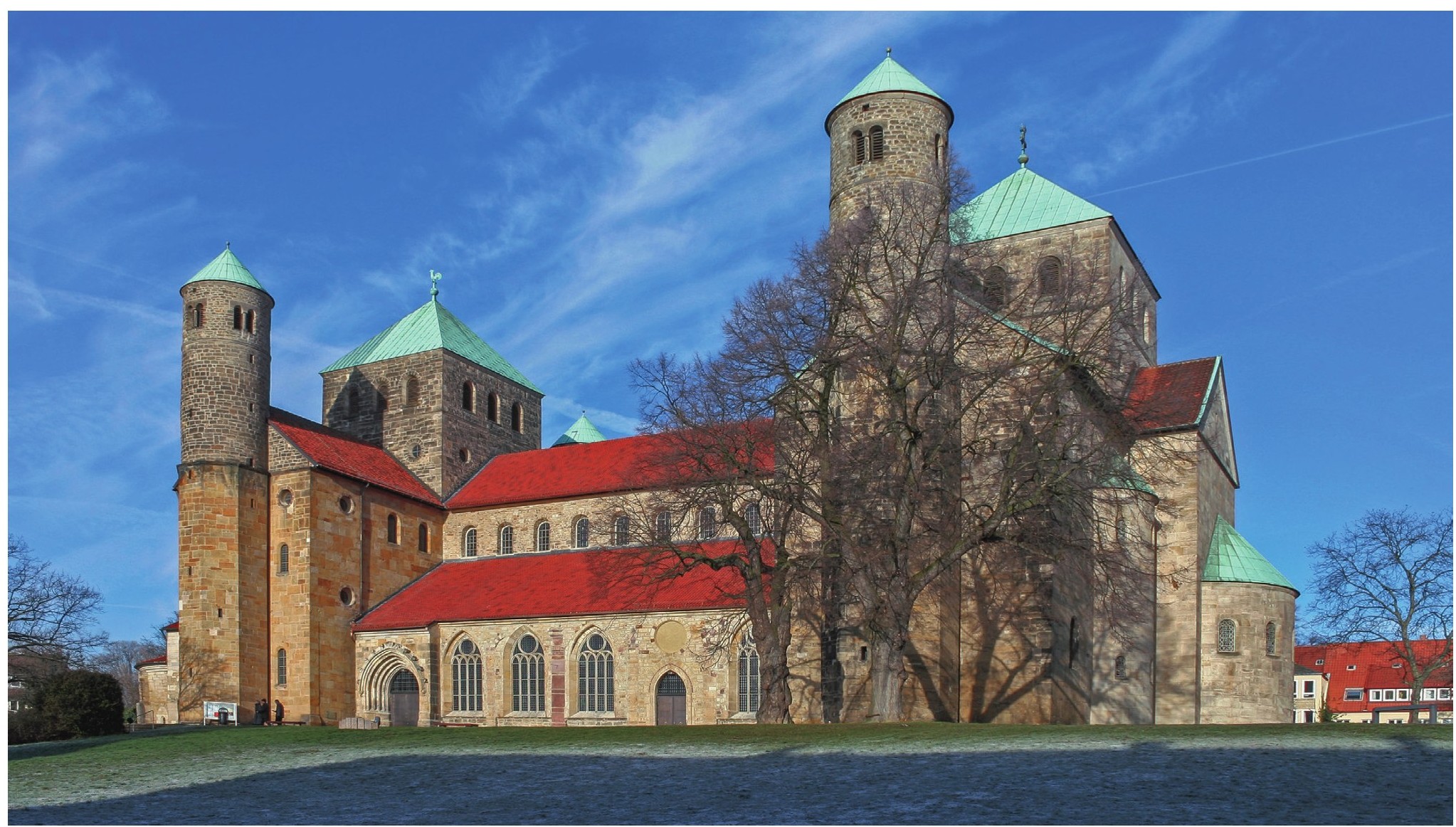 圣米迦勒教堂建于1001—1031年,在第二次世界大战期间遭到轰炸,现已基本恢复原貌。这个教堂在加洛林时代的模式基础上进行了精心的改造,建有双后殿、双耳堂和多个塔楼。耳堂加强东西两边的重力,而中堂似乎只起到将两个部分连接起来的作用。南北两侧面的入口完全改变了教堂向东而建的传统,使教堂反而更像古罗马的巴西利卡。