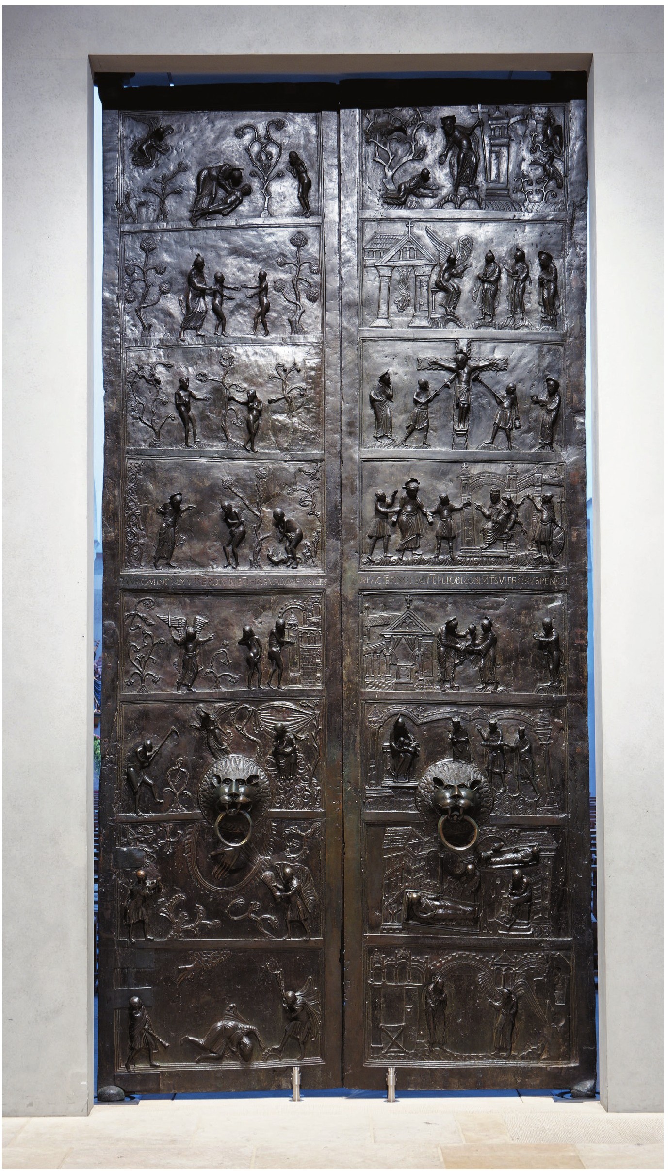图5-12 伯恩瓦尔德之门,德国希尔德斯海姆圣米迦勒教堂,青铜,1015年,高4.72米