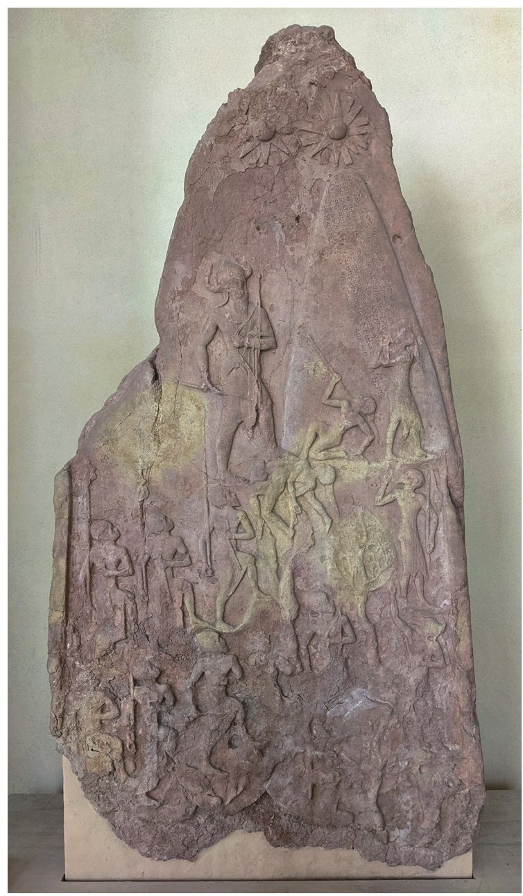 图1-24 《纳拉姆-辛胜利纪念碑》,出土于伊朗苏萨,粉沙石,约公元前2250年,高2米,宽1.5米,巴黎卢浮宫