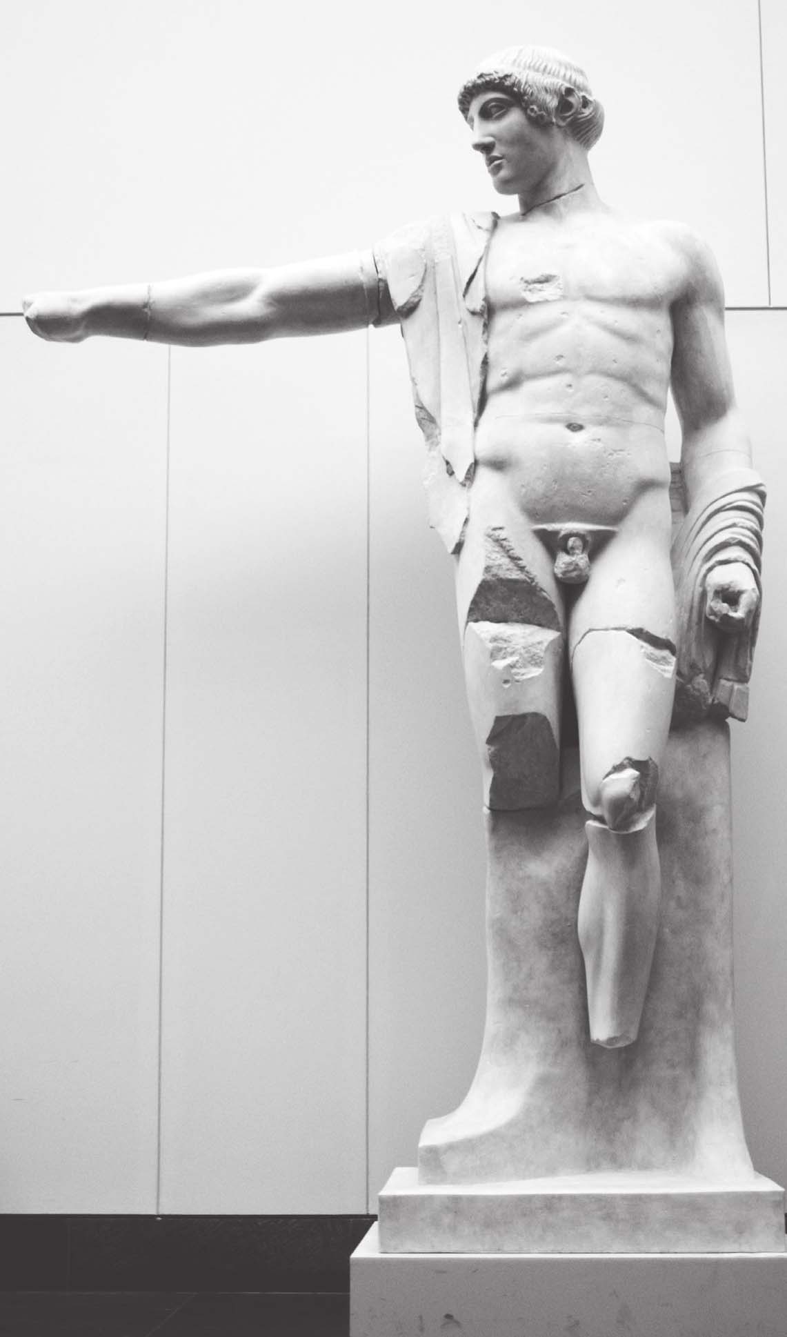 图3—4 《宙斯神庙中的阿波罗像》,复制品(原作创作于公元前5世纪),德国慕尼黑古代塑像博物馆。